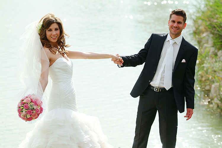 Kriszti és Riki esküvője gyönyörű napsütésben köttetett, de a szél, az óriási volt! Az esküvői fotózás helyszíne egy tópart és a körülötte lévő nádas volt. A szél felkorbácsolta a vizet és a nádsusogás is vésztjóslóan hangzott. A nagy szám mégis az volt, hogy Kriszti és Viki semmit nem észleltek ebből! Csak mosolyogtak és csókolóztak egymással, és csak ezt a két dolgot ismételték végig a fotózás alatt. Ebből láthatunk néhány képet: